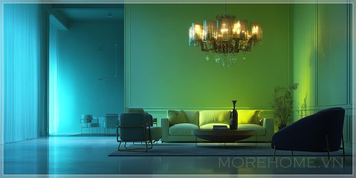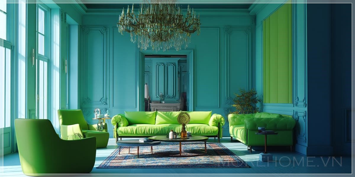 Bước vào căn phòng này, bạn sẽ cảm nhận được một thế giới hoàn toàn khác biệt - nơi mà hai sắc màu xanh lam và xanh lục không chỉ tồn tại mà còn hòa quyện một cách tuyệt vời, tạo nên một không gian sống hiện đại đầy mê hoặc. Đây không phải là một thí nghiệm táo bạo về màu sắc, mà là một tác phẩm nghệ thuật sống động, nơi mỗi chi tiết đều được tính toán kỹ lưỡng để mang đến trải nghiệm thị giác hoàn hảo.