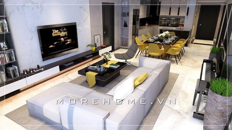 Thiết kế phòng khách hiện đại, trẻ trung trong chung cư dành cho vợ chồng trẻ.