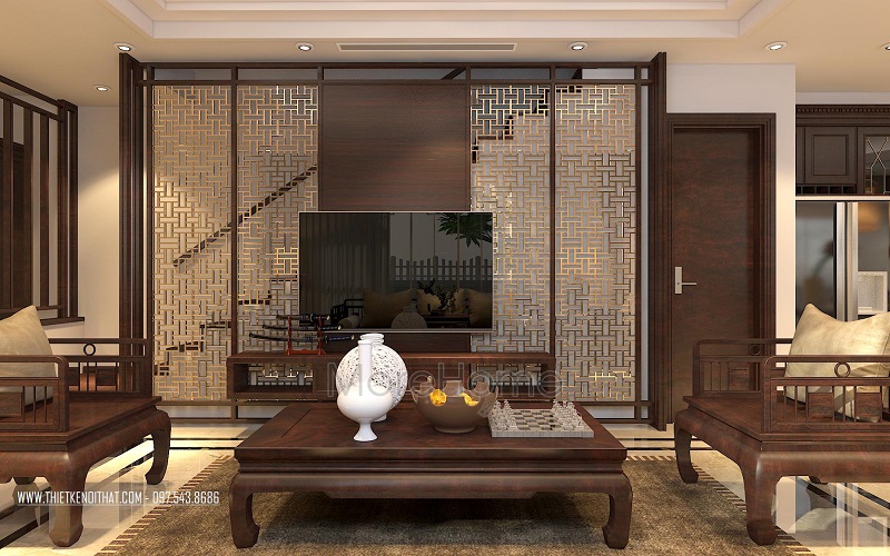 Nét cổ điển, mộc mạc mà sang trọng, tinh tế của phòng khách do Morehome thiết kế tại biệt thự Vinhomes Thăng Long Nam An Khánh.